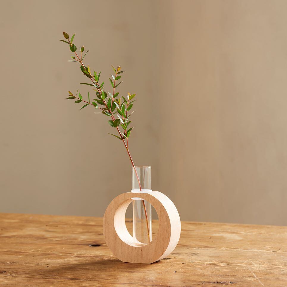 天然木の温もりとガラス管の透明感が優しいムードを演出する北欧テイストのフラワーベース。